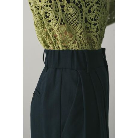 [型番:500ISS31-1111]モデル身長167cm(Mサイズ着用)抜け感のあるパターンシルエットにこだわったスリータックスラックス。サイドゴム仕様で楽に着用頂けながら、バックスタイルは美シルエットを叶えた一枚。500ISS30-1091(ルーズテーラードジャケット)、500ISS30-1101(ルーズテーラードベスト)とセットアップ着用可能。ストレッチ無地ややあり、透け感なし。【お手入れ方法】ドライクリーニング