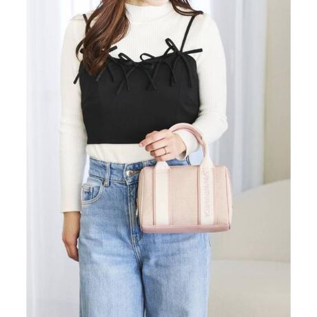 ◇SAMANTHAVEGA(サマンサベガ)のロゴテープミニボストンバッグベストセラーなロゴテ−プコレクションより、ボストンの新型が登場高級感のある素材で大人カジュアルにアップデートしたデザインです。▽デザイン・立体感のあるSAMANTHAVEGのロゴ刺繍がポイント・こだわりのバイカラー配色でクラシカルな印象に。・高級感がありハリのあるキャンバス素材で、カジュアルにも綺麗めなコーディネートにも◎▽機能性・開口部が広く荷物の出し入れもしやすいのが魅力・ショルダーベルト付きで2WAYでお持ちいただけます・内ポケット付きで細かな収納もしやすいです。【対応しているもの】・ミニ財布 ・ペットボトル350ml