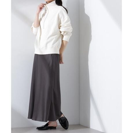 ドレープ感のあるサテン素材が上品な印象のロングスカート。バイヤス使いした生地で腰回りはすっきりと体に沿い、裾に向かってIラインに近い綺麗なシルエットを出してくれる一品。オフィススタイルや女子会、デートスタイルにもおすすめです!
