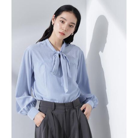 太めのリボンタイとスタンドカラーの前後2WAY仕様で、雰囲気を変えて楽しめるボウタイブラウス。適度な落ち感とクラシカルな風合いがある素材がソフトな女性らしさを感じる一着。ジャケットやニットカーデなど薄手の羽織りもレイヤードしやすいセットイン型がシーンレスで重宝します!