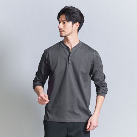 スマートにインナーや一枚着として着こなせるスキッパーヘンリーネックTシャツです。