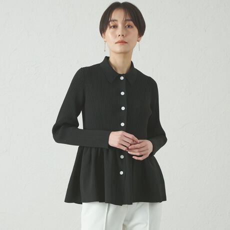 ペプラムシルエットのリブニットカーディガン。