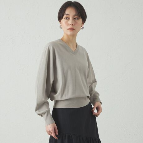Vネックで大人の抜け感がある1枚着ニットトップス。