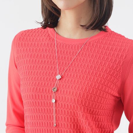 [型番:U1V08516__]カラースライドネックレス三種類の形状の違うガラスパーツのスライドネックレスです。パーツを好きな位置に設定してお楽しみに頂けます。(チェーンのねじれが生じた時は、パーツを固定させてチェーンを動かして頂くと元に戻ります。)