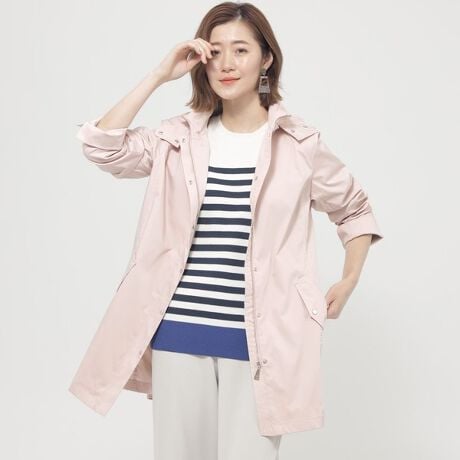 今期は新しく、防シワとUVカットの機能性が追加になり、よりデイリーに活躍するアイテムに!ストレッチ性のある適度な肉感のタフタ素材に、花粉がつきにくく落ちやすい、花粉対策加工を施した機能素材です。はっ水性も備えているので突然の雨にも安心。ポリウレタン混でありながら、リバー組織で軽やさを実現しました。トラベルシーンにもぴったりです。