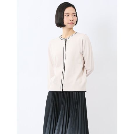 快適機能 配色クルーネック ニットカーディガン