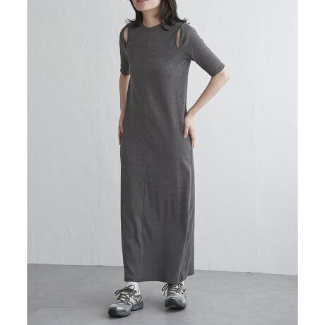肩のカットデザインが、さりげない肌見せを叶えるリブワンピース。
