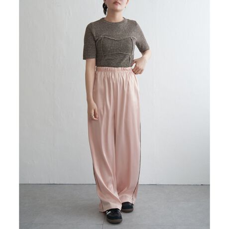 サイドラインがスポーティーなアクセントを効かせつつ、サテンの艶感で上品さをキープしています。