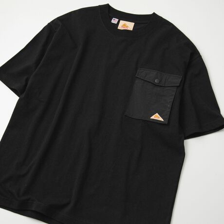シンプルなデザインに、フラップ付き別布ポケットがアクセントとなった半袖Tシャツ。