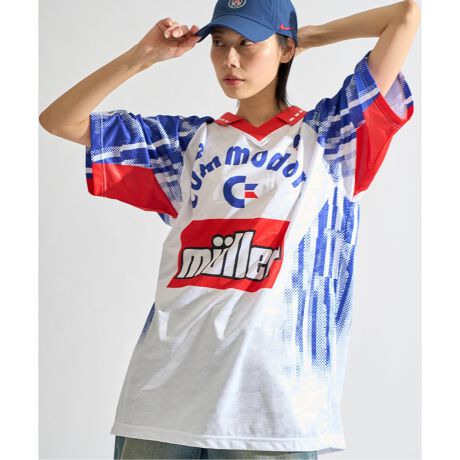 90年代特有のレトロな雰囲気と、PSGの伝統的なカラーが融合したデザインは、大胆なストライプと、スポンサーロゴが印象的な一着。
