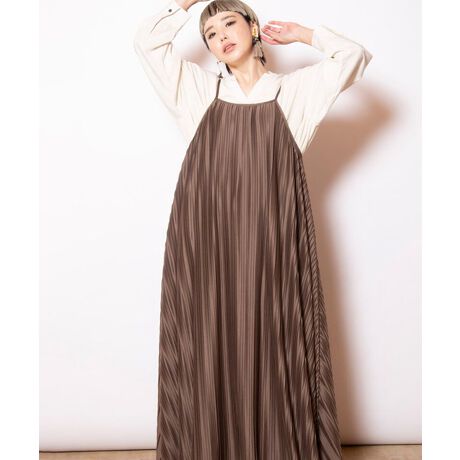 [型番:599006-959O]細かなプリーツとAラインシルエットが女性らしさを助長。解放感あるムードながら、インナー次第でシーズンレスに活躍。===========================透け感: ほぼなし(L.BEIGE)伸縮性: あり(プリーツ分)光沢感: ややあり裏地: なし素材について: ツヤのあるプレスの効いたプリーツ===========================