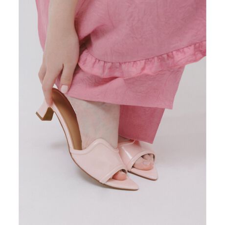 履き口部分に立体感のあるウェーブデザインを施した華やかさのあるミュール。