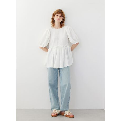 ペプラムの切替位置にこだわりがあり子供っぽくならないように仕上げています。