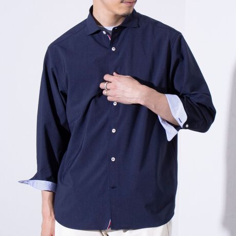 快適な着心地が魅力のパラシュートボタン 七分袖シャツ