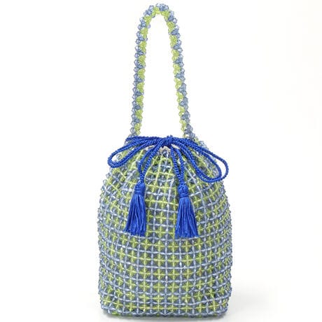 [型番:C8463]クリア感のあるビーズデザインが可愛いミニバッグ。アクセサリー感覚で取り入れられるコンパクトなサイズ感。★間口は巾着仕様で中身が見えないところも安心◎
