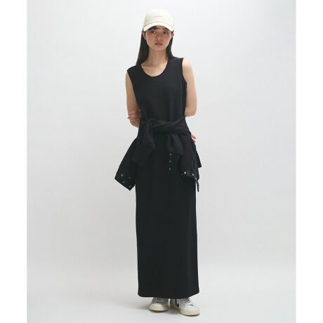 合わせて着るだけでスタイルアップ効果のある、ショート丈のカーディガンとノースリーブワンピースのセットアイテム。