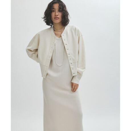 ON/OFFでの兼用が可能で着回しやすくシーズンレスな素材で長く着用可能。