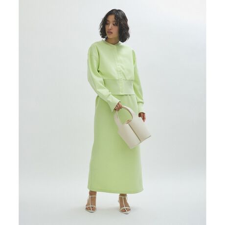 合わせて着るだけでスタイルアップ効果のある、ショート丈のカーディガンとノースリーブワンピースのセットアイテム。