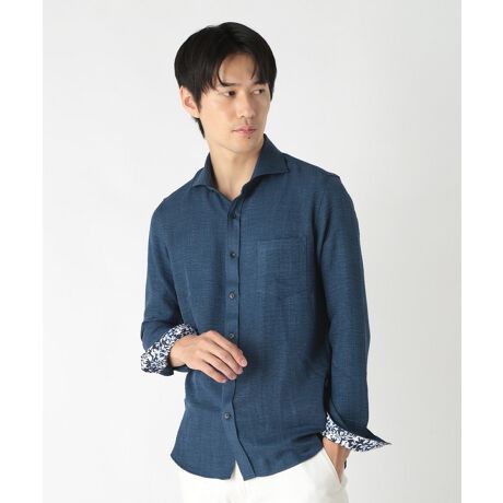 シャツのデザインはシンプルでありながらも、素材が与える風合いや質感が個性的で魅力的です。