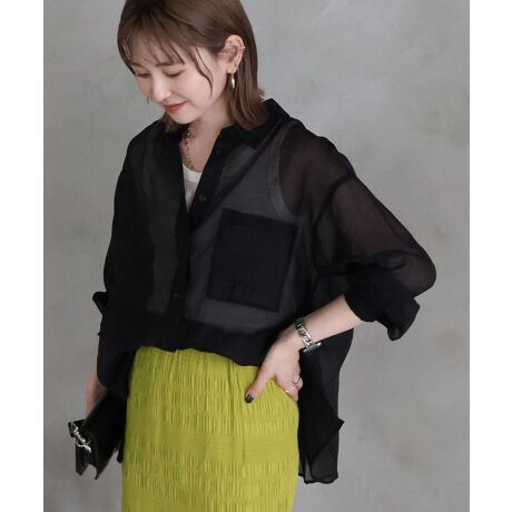 シルキータッチでナチュラルな肌触りが軽やかなシアーシャツ。柔らかな雰囲気で春のスタイリングに最適な一枚です。襟付きボタンダウンにチェストポケットを設けたベーシックなディテールでどんなボトムとも好相性。サイドスリットやバックに施したダブルタックがよりエアリーなシルエットを演出してくれます。