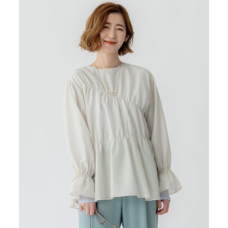品のいい透け感とギャザーの甘さが、今っぽさと洒落感をぐっと高める