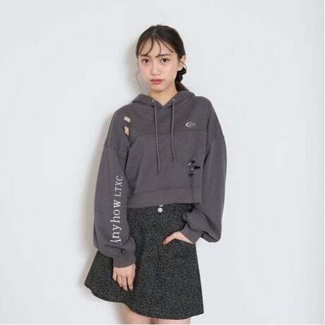 切りっぱなしデザインがトレンド感のある裏毛プルオーバーです。