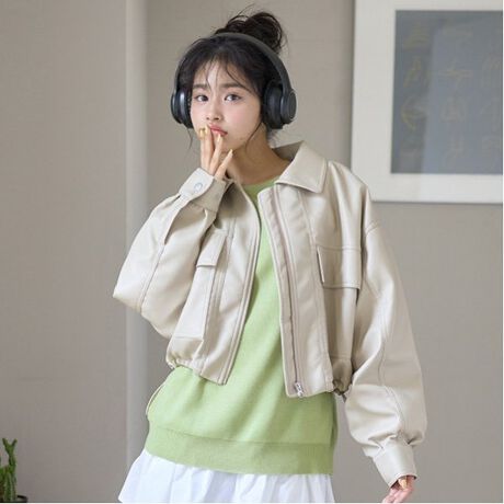 合皮ショートブルゾン