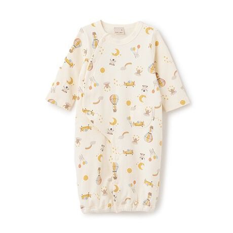 空を飛んでいるアニマルの総柄がユニークな2WAYオールです。