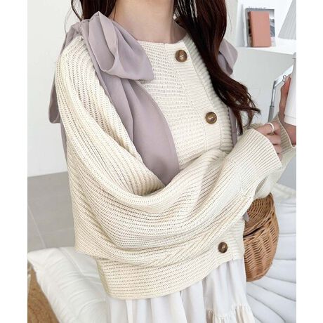 ・前後での着用、肩開きの調整可能なマルチウェイニットカーディガン