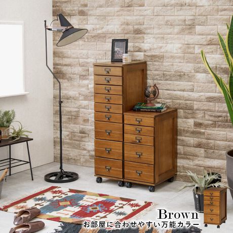 A4クリアファイルを収納できるアンティーク風チェスト。深さの違う2種類の引出しに、移動しやすいキャスターも付いており、機能面とデザイン面を両立したチェストです。【商品サイズ(約)】幅28×奥行37×高さ60cm【材質】天然木(桐)【生産国】中国【備考】お客様組立品(キャスターのみ取り付け)