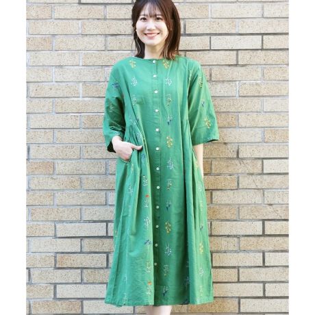 カラフルな草花の刺繍を麻混の生地にのせて、爽やかに仕上げました。