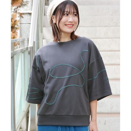 肘にかかる長めの袖の長さでで、ゆるっとカジュアルに着こなせる1枚です。