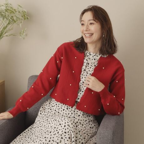 全体に散りばめたパール調が華やかでコーディネートのアクセントになる一着。