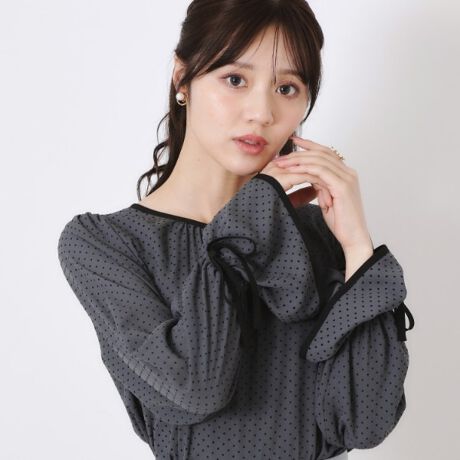 上品な小粒ドットをあしらったデザインブラウス。