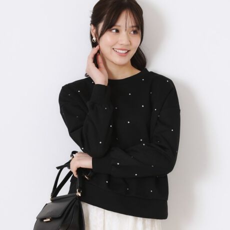 上品にキラキラしたビジューが付いたデザインプルオーバー。