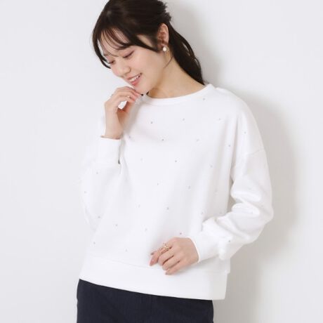 上品にキラキラしたビジューが付いたデザインプルオーバー。