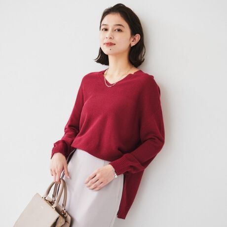 さらっとしたドライな肌触りの春夏定番素材ペーパーエステルの薄手でハリ感あるゆるVネックプルオーバー。