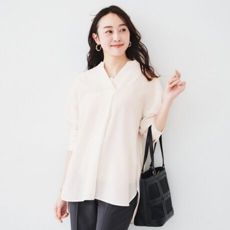 【体型カバーオンオフ使える】梳毛調ボイルシャツ