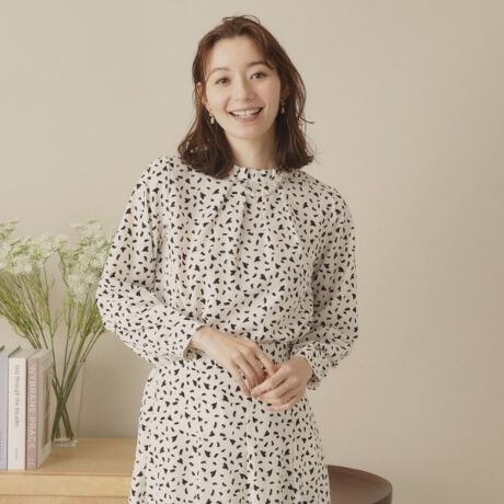 襟のタックデザインが胸元を立体的にふんわり柔らかな印象に。