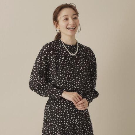 襟のタックデザインが胸元を立体的にふんわり柔らかな印象に。