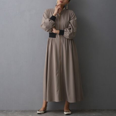ウエストと袖の編立リブがアクセントになったZIPワンピース。
