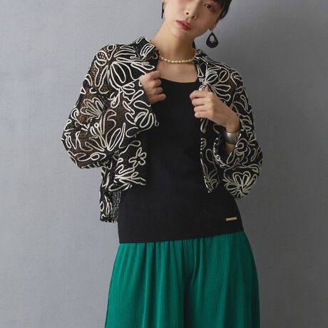 コード刺繍が目を引くシャツは、ショート丈でトレンド感あるデザインに。