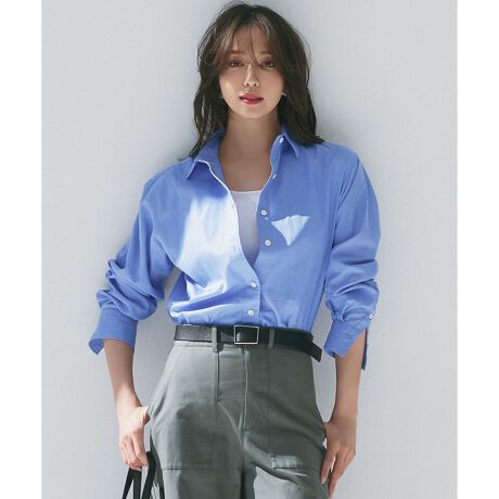 ベーシックなデザインの上質なシャツ。メンズライクなつくりですが、身幅のすっきりとしたラインがエレガントで女性らしい雰囲気を引き出してくれます。肩幅には少しゆとりを持たせているので着心地も抜群。一枚あるとロングシーズン活躍する、ワンランク上のベーシックシャツです。シンプルにデニム合わせはもちろん、タイトスカートやワイドボトムスとも相性◎。暖かい気温の時期は一枚でサラッと、寒い時期になったらニットのインナーとしてもオススメです。カラーは定番無地のホワイト(#001)、爽やかなサックス(#072)、こなれ感のあるオレンジ×サックスストライプ(#120)、清潔感のあるブルー×イエローストライプ(#172)、オンオフ使えるホワイト×グリーンストライプ(#101)の5色展開です。