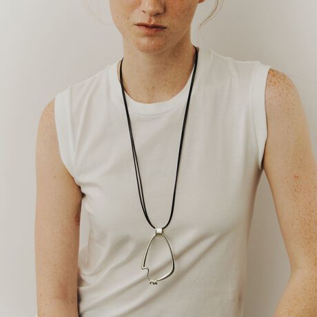 コイルを巻き付けたようなモチーフをトップに配した存在感のあるコードネックレス。