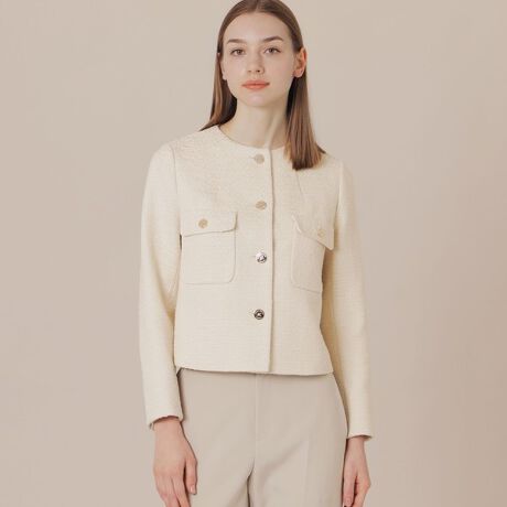 やや短めのコンパクトなフォルムとすっきりとしたバランスで、カーディガンのようにさらっと羽織れるツィードジャケットです。エレガントスタイルだけでなく、デニムやTシャツなどを合わせてカジュアルダウンした着こなしもおすすめです。総裏地付きです。