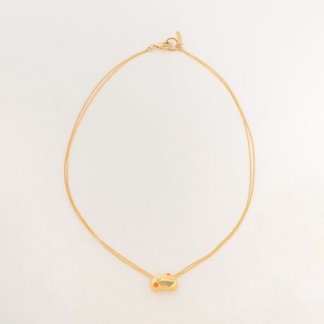 華奢な2連チェーンにビーン型のトップを配したショートネックレス。