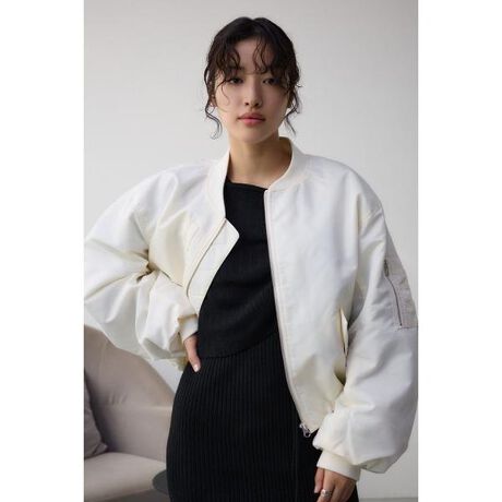 ■シャーリングMA-1■ポイントしなやかな風合いと光沢感が特徴のナイロン素材を使用した、トレンド感のシルエットとこだわりのディティールを持ったMA-1。■ディティール袖とバックにシャーリングを入れることでボリューム感のあるシルエットにこだわったディティールになります。薄中綿入りのコンコンパクトな丈感がポイントです。■スタイリングたっぷりとした抜け感のあるオーバーサイズで羽織るだけで様になるシルエットに。裾にドローコード付きで、絞ることでシルエット変化もお楽しみ頂けます。スカートにもパンツにも合わせやすい、マルチに着まわせる1枚です。■生地光沢感のあるナイロン素材を使用しています。透け感:なし裏 地:あり伸縮性:なし光沢感:ややあり