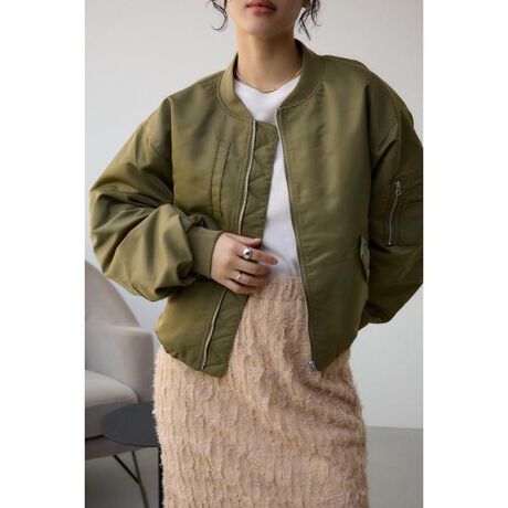 ■シャーリングMA-1■ポイントしなやかな風合いと光沢感が特徴のナイロン素材を使用した、トレンド感のシルエットとこだわりのディティールを持ったMA-1。■ディティール袖とバックにシャーリングを入れることでボリューム感のあるシルエットにこだわったディティールになります。薄中綿入りのコンコンパクトな丈感がポイントです。■スタイリングたっぷりとした抜け感のあるオーバーサイズで羽織るだけで様になるシルエットに。裾にドローコード付きで、絞ることでシルエット変化もお楽しみ頂けます。スカートにもパンツにも合わせやすい、マルチに着まわせる1枚です。■生地光沢感のあるナイロン素材を使用しています。透け感:なし裏 地:あり伸縮性:なし光沢感:ややあり