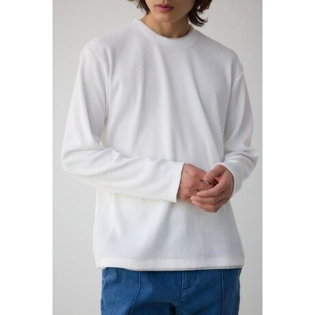 ワッフルフェイクレイヤード長袖トップス
