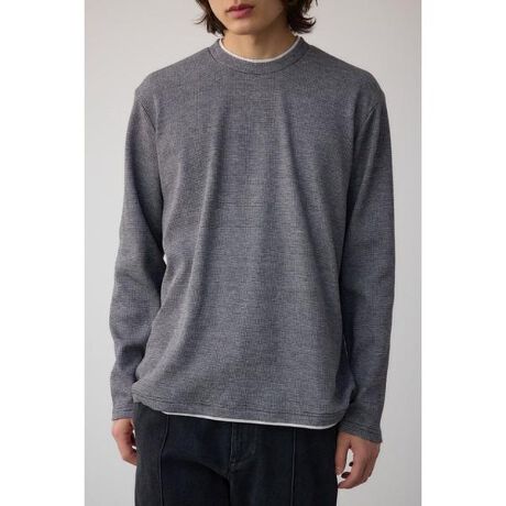 ■ワッフルフェイクレイヤード長袖トップス■ポイント1着で様になるフェイクレイヤードトップスです。■ディティール2サイズでベーシックなシルエットです。表面感のあるワッフル素材が高見えさせてくれます。重ね着風なので1枚で様になります。■スタイリングデニム合わせでカジュアルな着こなしがおすすめです。■生地編み目の細かいやわらかいワッフル生地です。透け感:なし裏 地:なし伸縮性:なし光沢感:なし